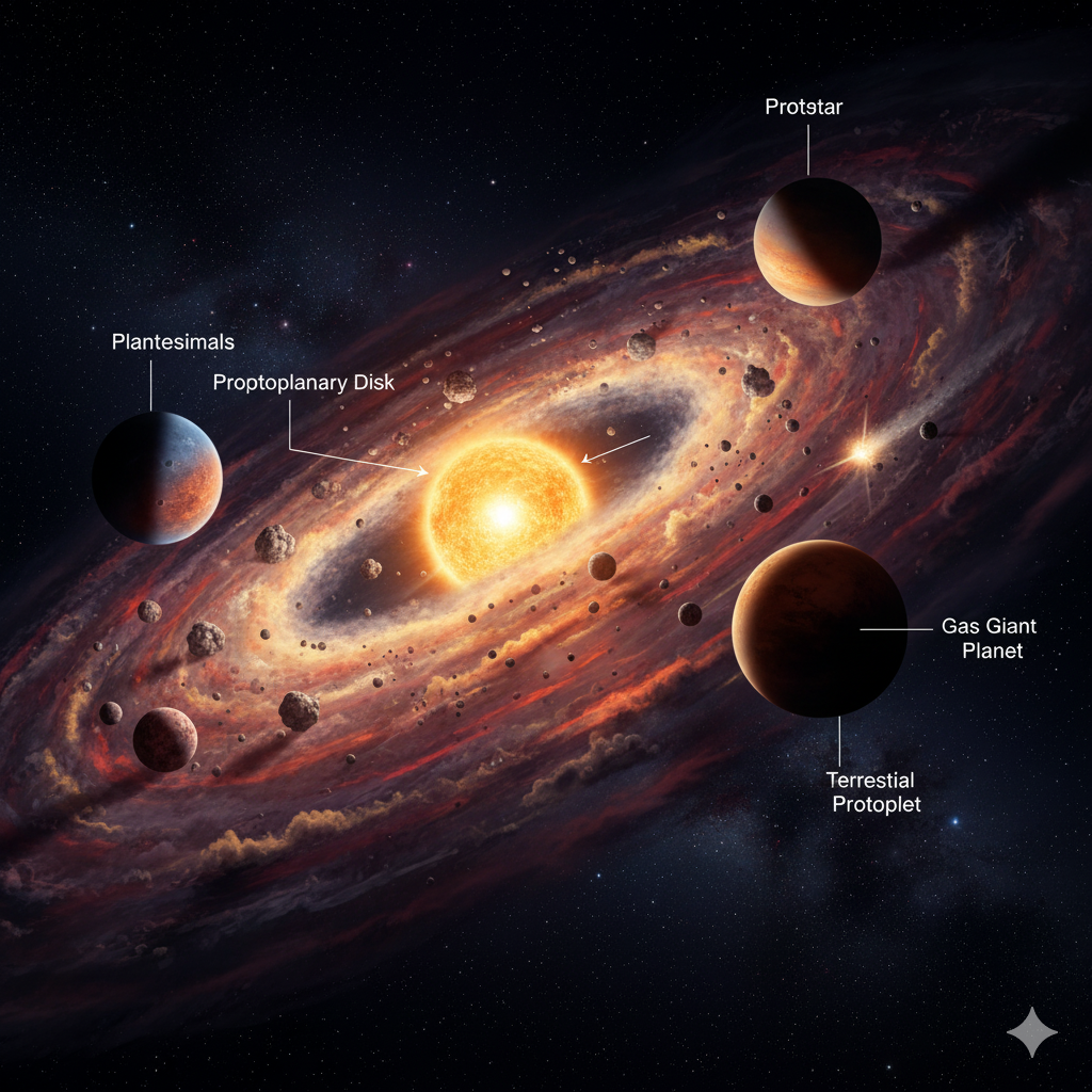Já se perguntou como os planetas se formam a partir de nuvens de gás e poeira no...